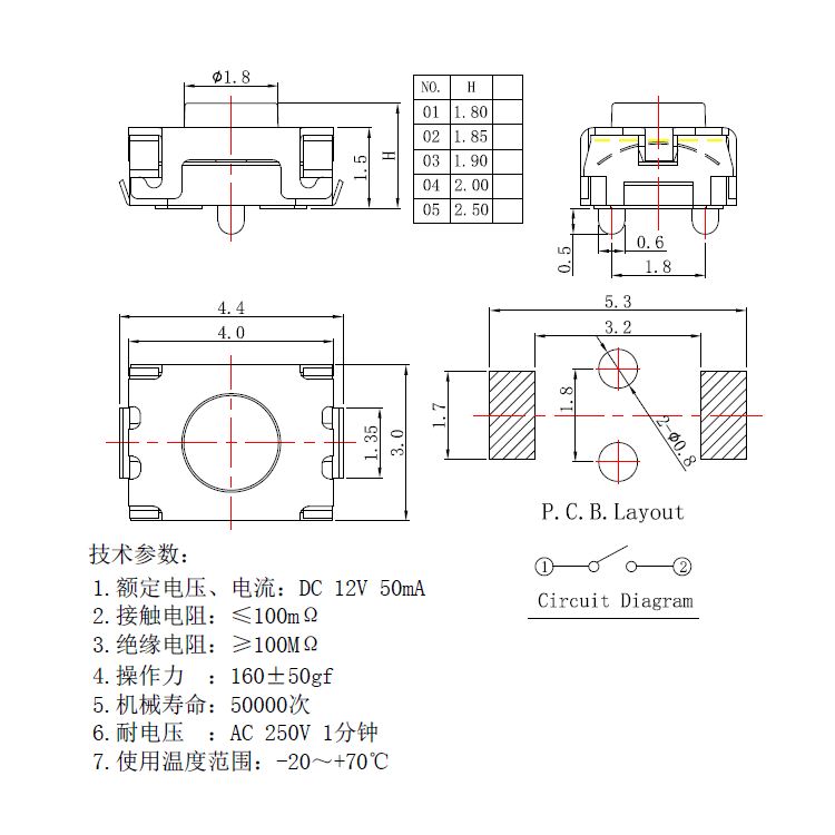 規(guī)格:3mm*4mm ? ? ? ? ? ? ? ? ?力度:250士50gf